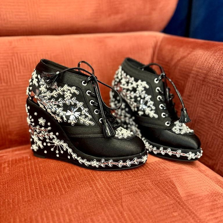 Black Bridal Sneaker Wedges - Customized Wedding Shoes