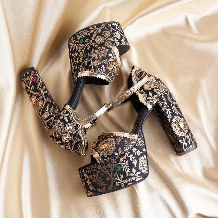 Hand-embroidered 6-inch Block heels are here to make a statement while being comfortable to wear for longer hours on your special day!