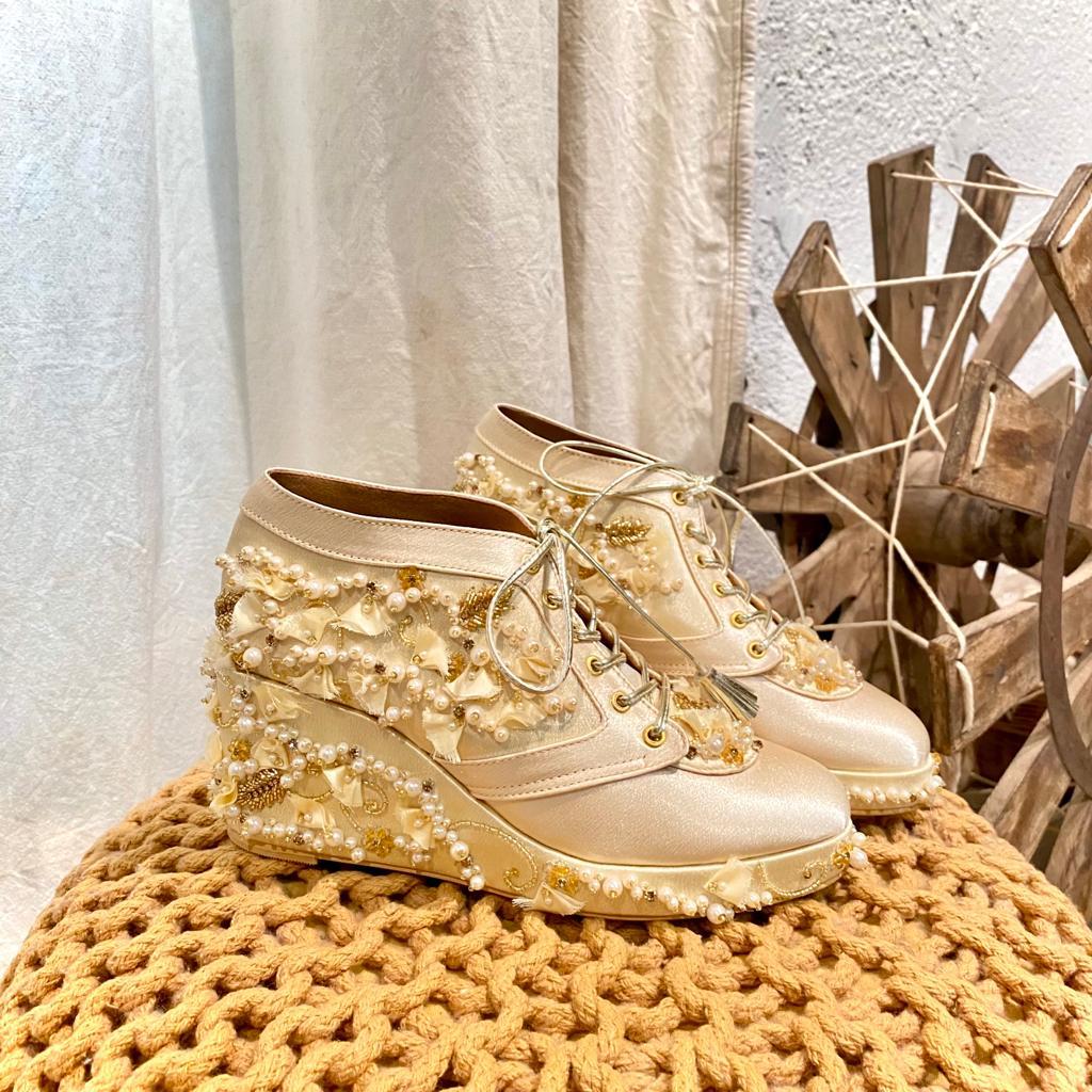 Cindrella Gold Bridal Sneaker Wedges - Customized Wedding Shoes | Tiesta