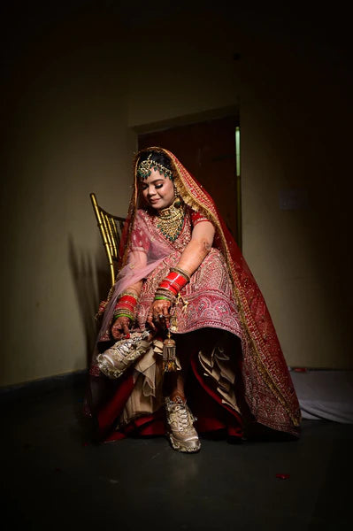 For a customized heel height, we charge ₹1,500 additional , and for embroidery matching your lehenga, an additional ₹3,000.
