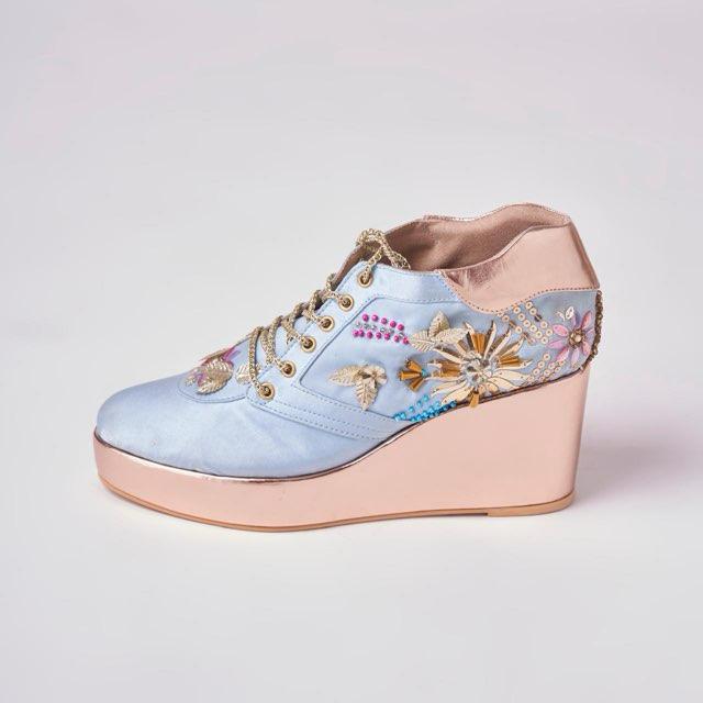 Our Rose Gold and Blue Embroidered Bridal Sneaker Wedges can be customised in any colour and heel height for the bride to be.