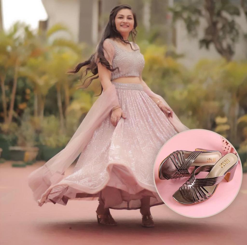 For a customized heel height, we charge ₹1,500 additional , and for embroidery matching your lehenga, an additional ₹3,000.