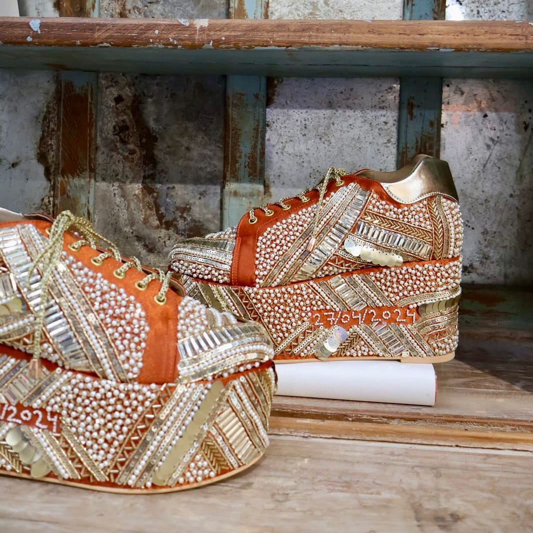 Looking for a sneakers that goes perfectly well with your wedding dress? Don't worry we got your back. Now you can dance your heart out in these Platform Wedges that matches your lehenga and embroidery <3