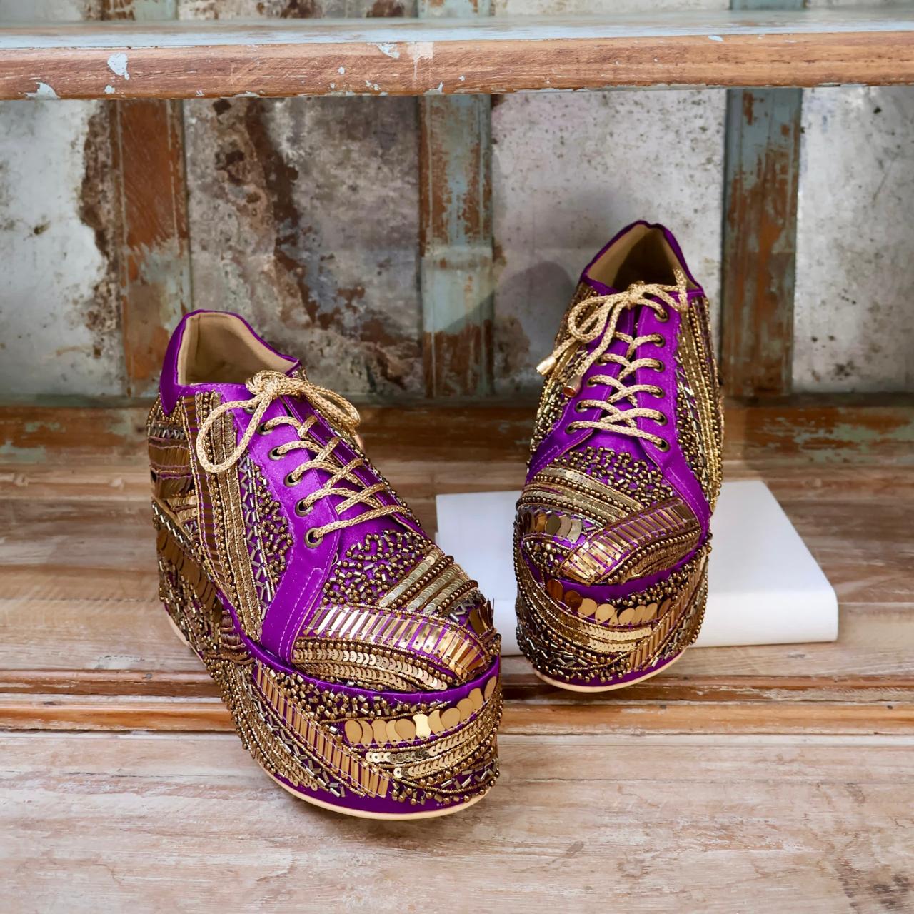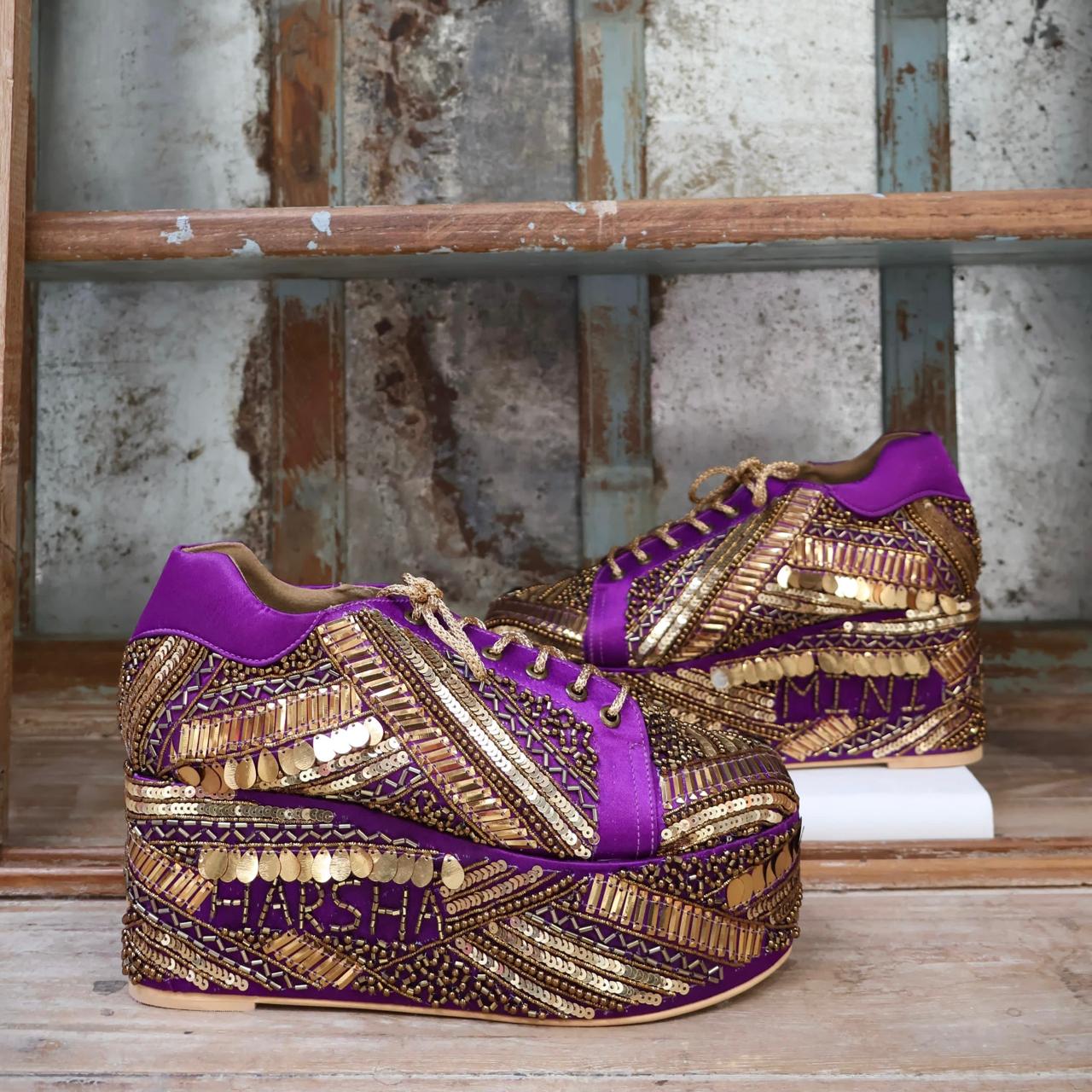 Looking for a sneakers that goes perfectly well with your wedding dress? Don't worry we got your back. Now you can dance your heart out in these Platform Wedges that matches your lehenga and embroidery <3