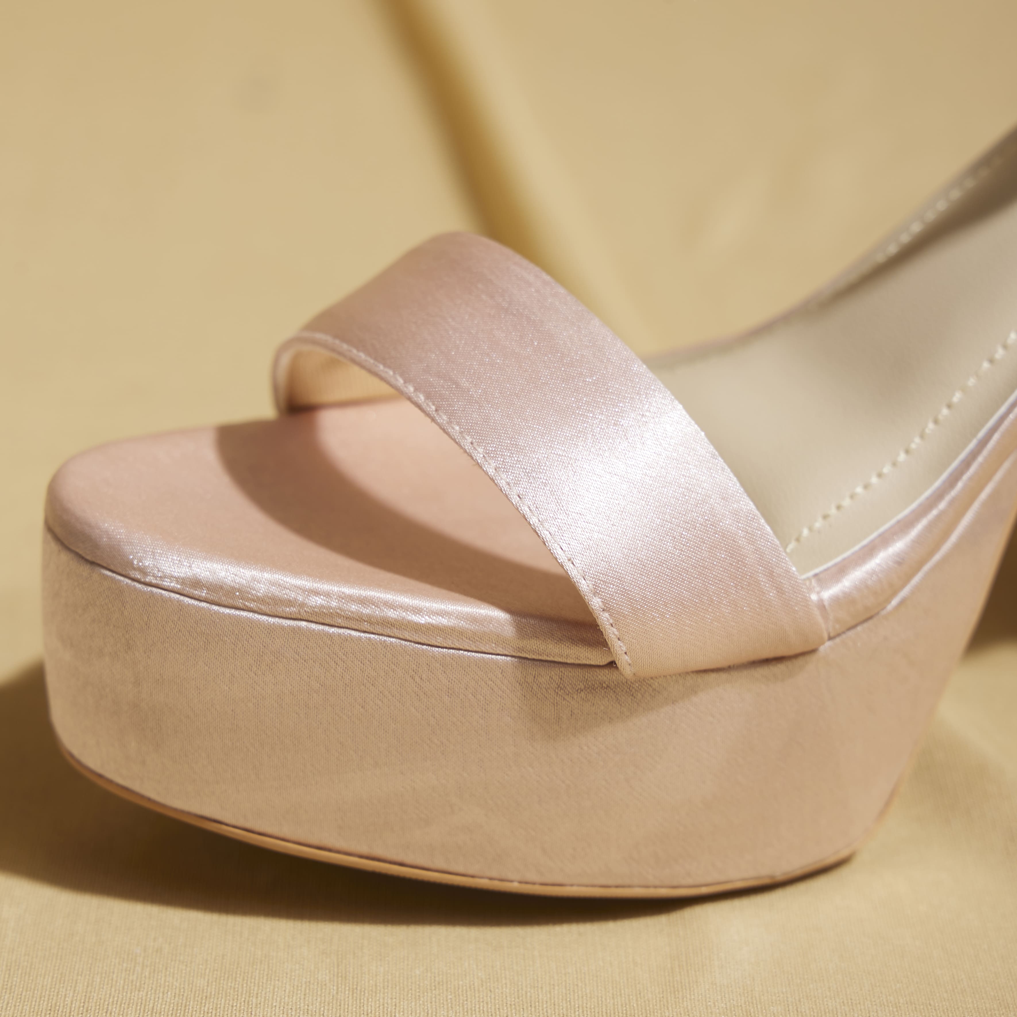 Nude Satin Open Toe Pumps – 4 to 4.5 Inch Heel & Platform | Customisable