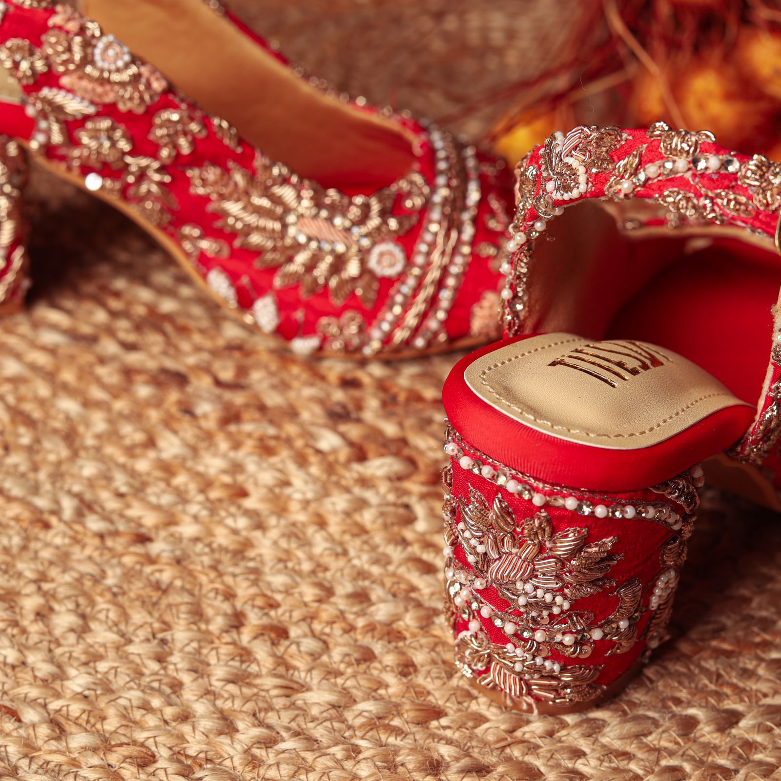 For a customized heel height, we charge ₹1,500 additional , and for embroidery matching your lehenga, an additional ₹3,000.