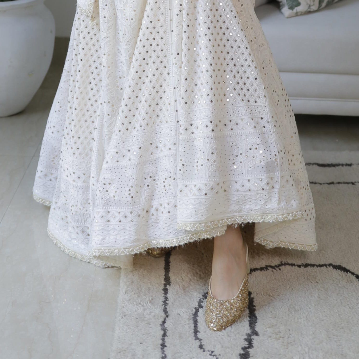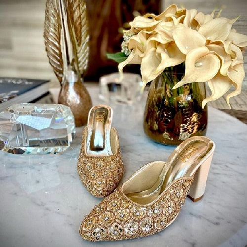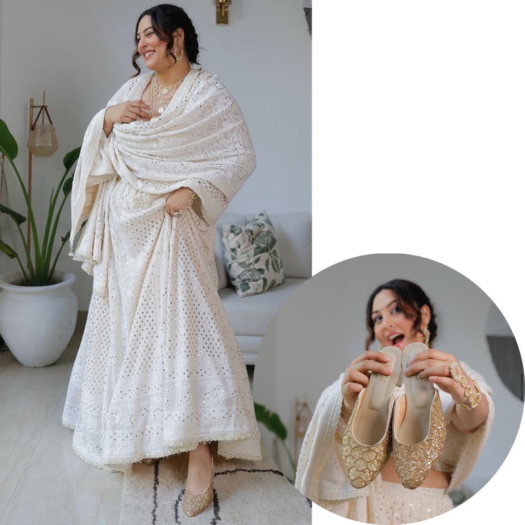 For a customized heel height, we charge ₹1,500 additional , and for embroidery matching your lehenga, an additional ₹3,000.